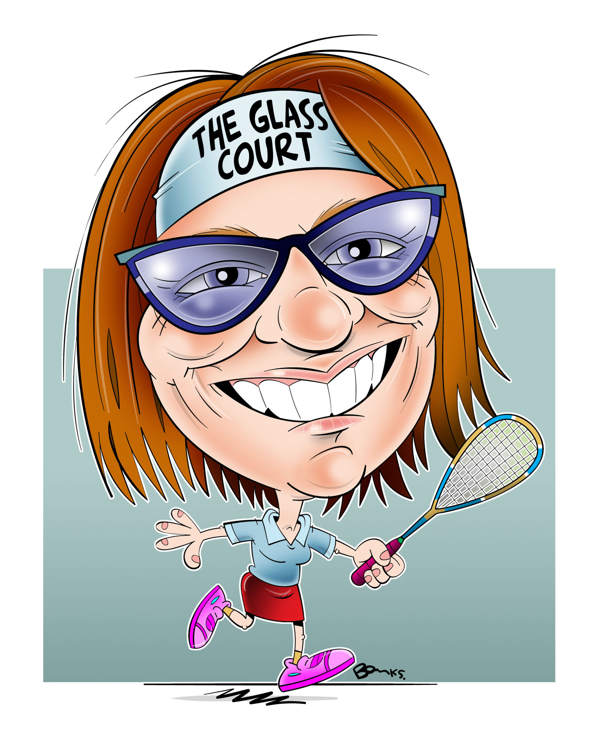 captivating fun artwork. She wanted to surpass dry verbal explanations and the inadequacy of squash stock images. Her unwavering determination to create something truly special led her to seek a collaborator who could bring her squash vision to life with bespoke, witty squash illustrations.